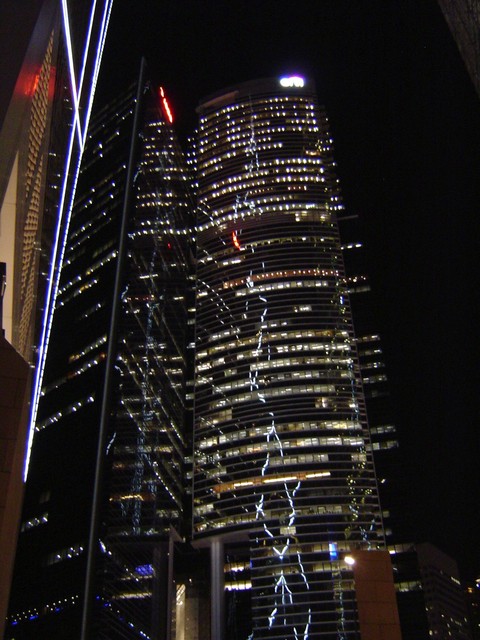 路上街景,市容乾淨。 我們在附近隨意亂逛,走著走著走到『西灣湖』旁,這是在西灣湖旁所拍的夜景,這麼美的夜景我卻拍成這樣,不是很清楚,該換相機了,衝著這張模糊的相片,我相信我會帶著我的新相機再來澳門的。